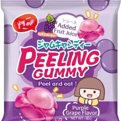 Peeling Gummy has 2-layer, each with different texture. It contains concentrated fruit juice which gives you a flavourful bite.