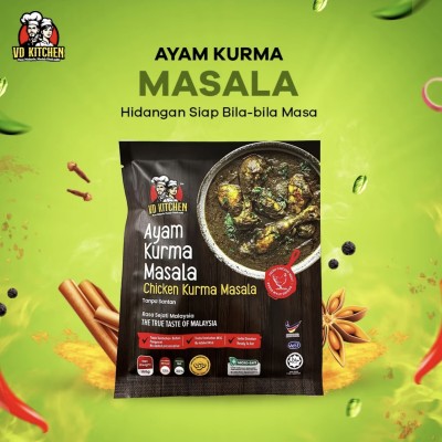 Sesuai untuk hidangan harian, makan tengah hari pejabat, bekalan perjalanan atau pembelian pukal, VD Kitchen Ayam Kurma Masala menawarkan rasa autentik dengan keselesaan moden.