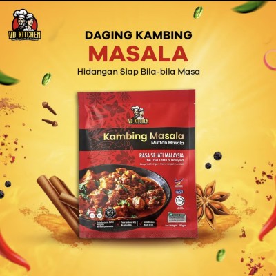 VD Kitchen Kambing Masala ialah lauk siap makan premium yang dimasak perlahan menggunakan daging kambing pilihan dan campuran rempah masala tradisional. Hidangan ini menampilkan rasa berempah yang kaya dengan tekstur pekat, sesuai dinikmati bersama nasi putih, roti atau hidangan kegemaran anda. Direka khas untuk gaya hidup moden, setiap pek boleh terus dipanaskan dan dinikmati dalam masa 3 minit — tanpa perlu memasak. Sesuai untuk hidangan harian, bekalan perjalanan, makan tengah hari pejabat atau pembelian pukal, Kambing Masala VD Kitchen menawarkan rasa berkualiti restoran dengan kemudahan maksimum. Pilihan ideal untuk mereka yang mahukan lauk autentik Malaysia yang mudah, bersih dan praktikal.