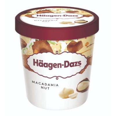 Haagen-Dazs Macadamia Nut Ice Cream Indulge in Macadamia Nut cup made with Macadamia nuts delicately selected from temperate Hawaiian and South African groves, roasted to perfection and artfully blended for a most majestic macadamia nut ice-cream.