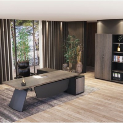 Manufacturer: DSOP Configuration: L-ConfigurationDimensions:o Width: 2100 mmo Depth: 2100 mmo Height: 750 mmAdditional Details: Table top thickness: 40 mmDescription: Attached side storage consists of:o 4 soft close drawerso Open shelf with finger pull dooro Flip-up cover for socket outletsMaterial: High Pressure Laminate (HPL) Melamine Faced Chipboard + Metal Leg