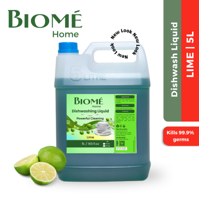 [Carton Deal] Biome Dishwash Liquid 5L – Lemon Lime x4 PRODUCT INFO: •2 x Grease Cleaning Power •Antibacterial, Killing 99.9% Germs •High Quality at affordable price DIRECTION FOR USE: •Mix 2-3 drops with ½ cup of waster in a bowl •Soak & squeeze sponge repeatedly until it lathers before washing kitchen utensils and cooking vessels •Rinse thoroughly with clean water •For tougher grease, squeeze 2-3 drops directly onto wet sponge AVAILABLE SCENT: •Lemon Lime •Lime & Mineral Salt CAUTION: •Keep out of reach from children. •If product comes into contact with the eyes, rinse with clean water immediately. •If swallowed, drink plenty of water and seek medical advice immediately. STORAGE: •Avoid from direct heat or sunlight, keep this product upright.